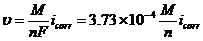 金屬腐蝕速度可用腐蝕失重或腐蝕深度表示,也可用腐蝕電流密度表示。它們之間可通過(guò)法拉第定律進(jìn)行換算,即