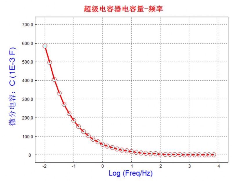 由圖可見,超級(jí)電容器電容量在高頻區(qū)域幾乎沒有電容量。在低頻率區(qū),具有極大的電容量。